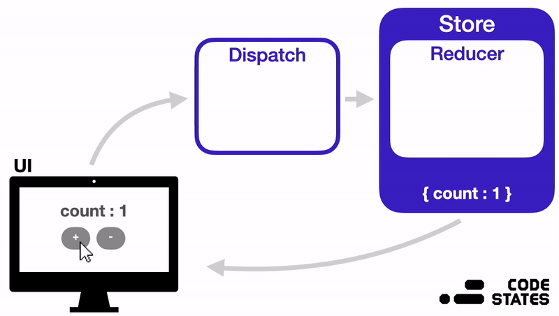 Redux는 다음과 같은 순서로 상태를 관리합니다.